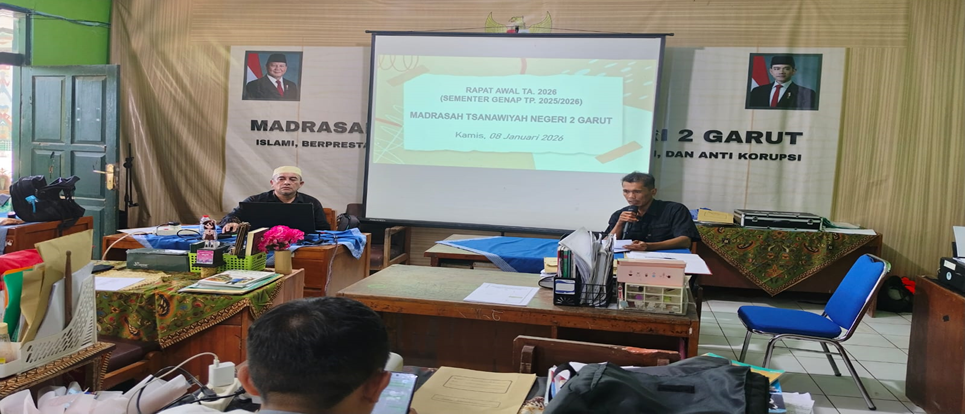 Dalam rangka mengawali pelaksanaan kegiatan pembelajaran pada Semester Genap Tahun Ajaran 2025–2026, Madrasah Tsanawiyah Negeri (MTsN) 2 Garut menyelenggarakan Rapat Dinas Awal Masuk Semester Genap pada Hari Jum’at, 9 Januari 2026, bertempat di lingkungan MTsN 2 Garut. Kegiatan rapat dinas ini dimulai pada pukul 07.15 WIB dan diikuti oleh seluruh pendidik dan tenaga kependidikan MTsN 2 Garut.